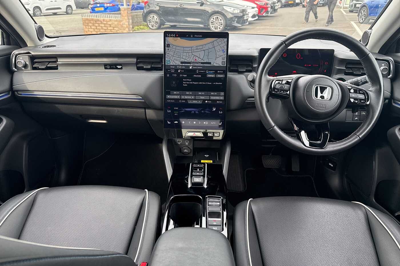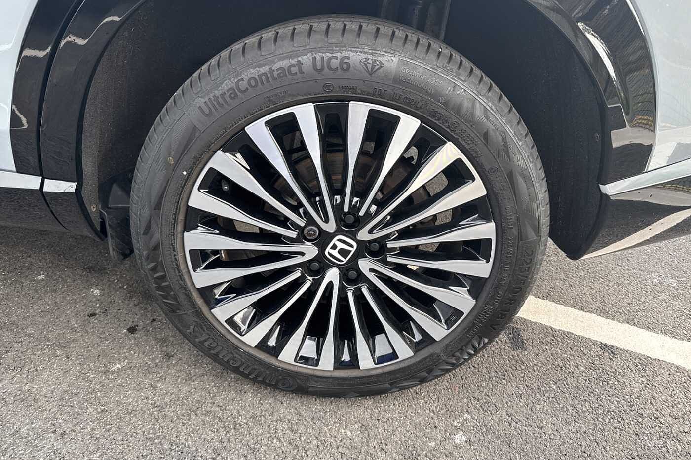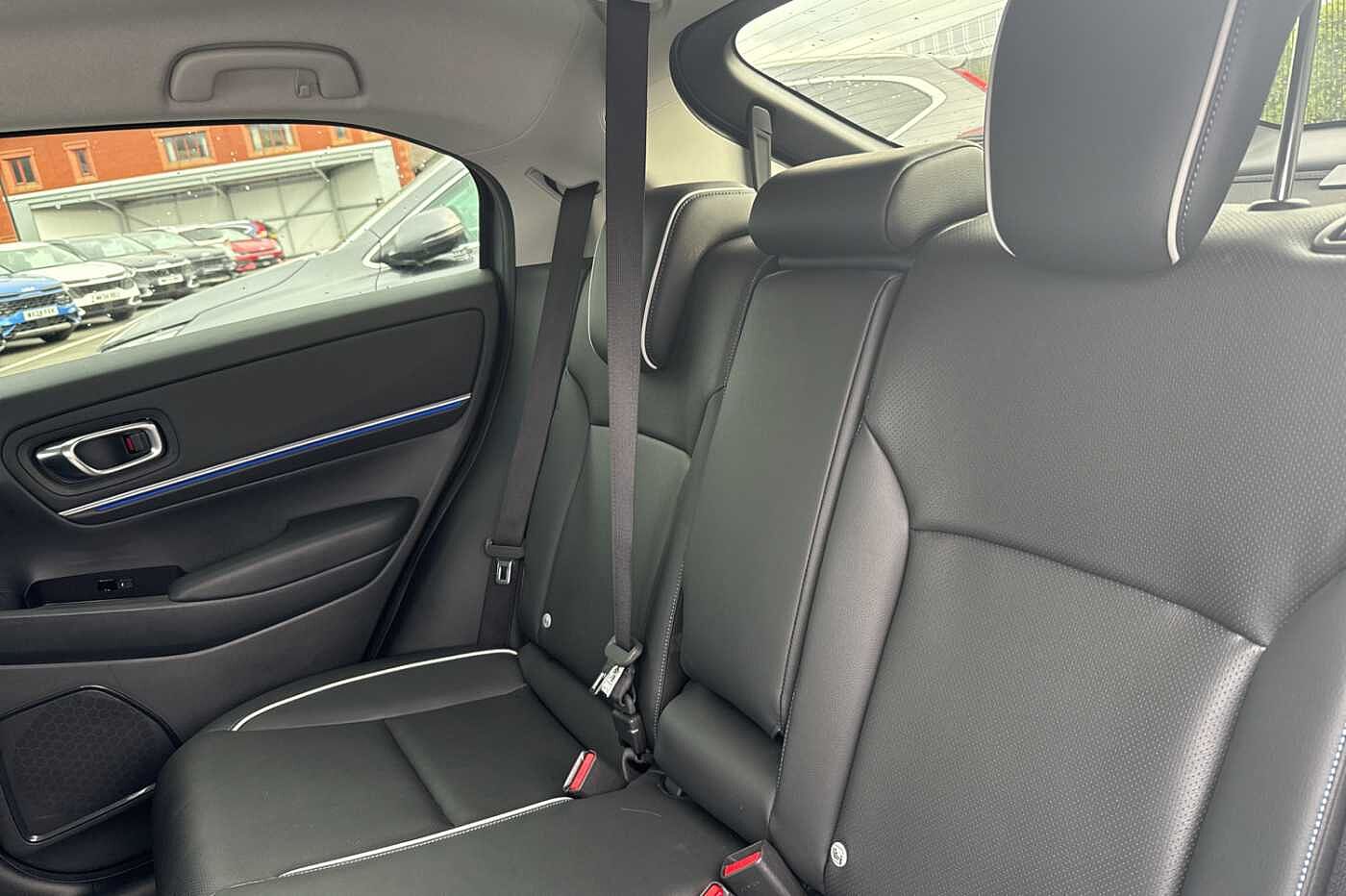 Exterior Features, Auto wipers, Front and rear electric windows, Privacy glass, Rain sensor, Rear wiper, Vehicle stability assist, Body colour door handles, High gloss black window garnish, Rear honda badging in white, Rear roof spoiler, Rear side wing doors, Shark fin antenna, 3rd brake light, Auto headlights, Front fog lights, Front LED Indicator lights, Headlight auto on/off timer, High beam assist, LED daytime running lights, LED Headlights, Smoke and clear lens rear light, White headlight extension, Safety, ABS/EBD, Brake assist function, Brake hold function, Collision mitigation braking system, Electronic parking brake with auto hold, Front and rear collision mitigation throttle control, Hill start assist, Regenerative braking/deceleration paddle control, 4 x front and 4 x rear parking sensors, Adaptive cruise control, Agile handling assist, Electric power steering, Emergency stop signalling system, Forward collision warning, Intelligent speed limiter, Lane departure warning system, Lane keep assist system, Lead car departure notification system, Low speed following, Rear view camera, Road departure mitigation, Traffic sign recognition, Auto dimming rear view mirror, Electrically adjustable and heated door mirrors, Electrically folding door mirrors, 3 rear 3 point seatbelts, Child locks on rear doors, Deflation warning system, Driver airbag, Driver SRS airbag (single stage inflation), Front and rear curtain airbags, Front passenger airbag, Front side airbags, Passenger SRS airbag with cut off switch, Whiplash lessening front headrests, Audio / Communications, Bluetooth hands free telephone connection, E-call, Wireless charging, 2 Tweeters, 2 x rear USB ports, 4 speakers, Front USB connections (Type-A and Type-C), Steering wheel audio remote control, Driver Convenience, Power meter, Miscellaneous, Drive mode (Econ, Sport, Normal), Econ mode, Honda CONNECT with Navigation 15" touchscreen, AM/FM/DAB, Apple Carplay and Android Auto, Live traffic info, Traffic jam assist, Trim, Exclusive styling silver trim with blue lighting in door and dash, 3 seat bench in 2nd row, 60/40 split one touch flat folding rear seats, 8 way electrically adjustable drivers seat, Heated front seats, I-Size ISO Fix Points, Rear head restraints, Single front passenger seat, Interior Features, Air conditioning - Rear vent, Dual zone automatic climate control, Black interior panels, Cargo net hooks, Chrome interior door handles, Driver and front passenger seat armrests, Leather steering wheel, Meter illumination, Normal pedals, Synthetic leather upholstery, Tilt/telescopic adjustable steering wheel, Tonneau cover, Under trunk charging cable storage, Ambient lighting on roof, Courtesy lights, Front map lights, Rear reading lights, Trunk light, Driver/passenger sunvisors with illuminated vanity mirrors, Security, Honda super locks, Immobiliser, Mirrors and windows key fob operation, Remote central locking with 2 key fobs, Security alarm, Smart entry + Smart start, Ultrasonic security sensor, Vehicle Charging, 11kW on board charger, Wheels, White wheel covers, Flat tyre solution temper tyre/repair kit