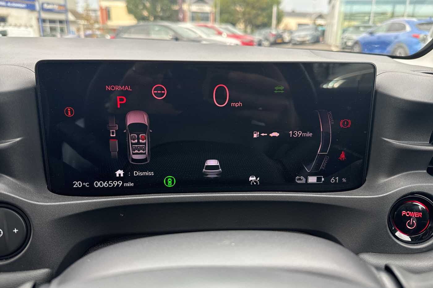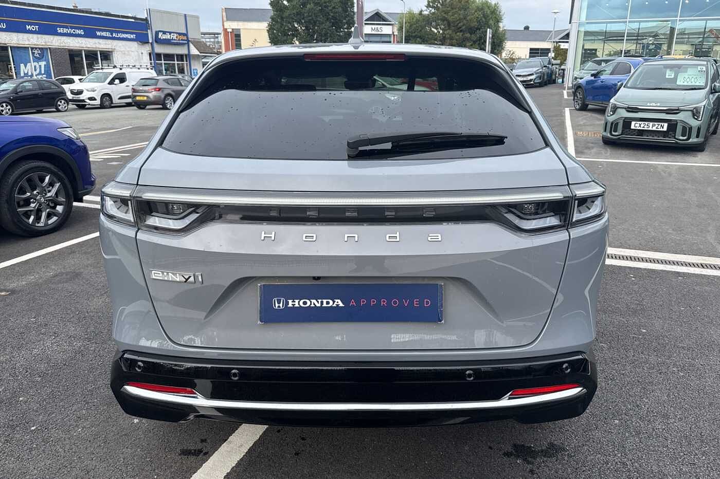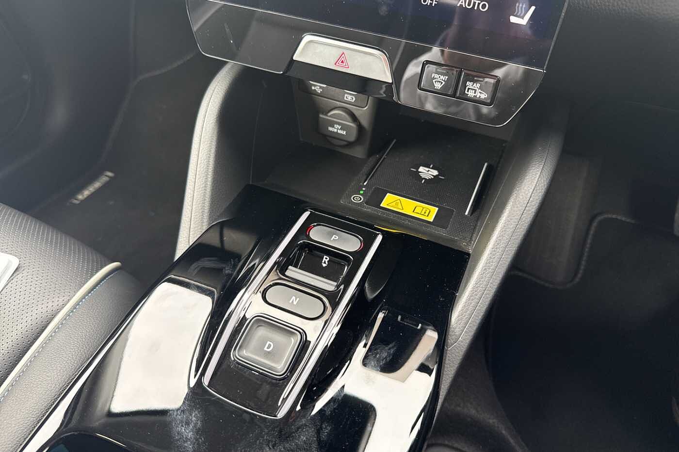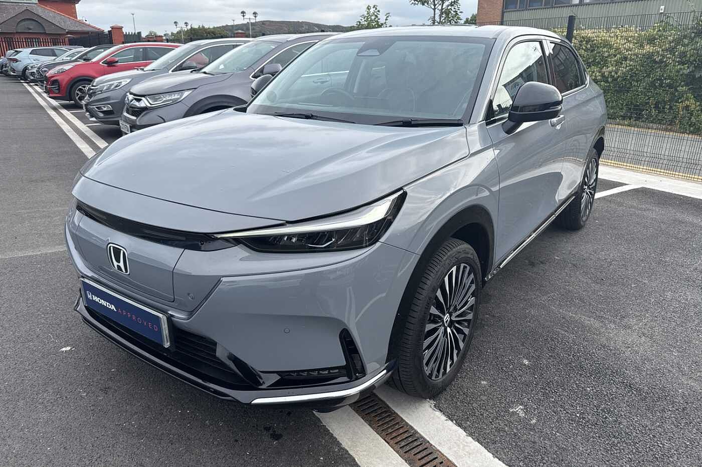 Exterior Features, Auto wipers, Front and rear electric windows, Privacy glass, Rain sensor, Rear wiper, Vehicle stability assist, Body colour door handles, High gloss black window garnish, Rear honda badging in white, Rear roof spoiler, Rear side wing doors, Shark fin antenna, 3rd brake light, Auto headlights, Front fog lights, Front LED Indicator lights, Headlight auto on/off timer, High beam assist, LED daytime running lights, LED Headlights, Smoke and clear lens rear light, White headlight extension, Safety, ABS/EBD, Brake assist function, Brake hold function, Collision mitigation braking system, Electronic parking brake with auto hold, Front and rear collision mitigation throttle control, Hill start assist, Regenerative braking/deceleration paddle control, 4 x front and 4 x rear parking sensors, Adaptive cruise control, Agile handling assist, Electric power steering, Emergency stop signalling system, Forward collision warning, Intelligent speed limiter, Lane departure warning system, Lane keep assist system, Lead car departure notification system, Low speed following, Rear view camera, Road departure mitigation, Traffic sign recognition, Auto dimming rear view mirror, Electrically adjustable and heated door mirrors, Electrically folding door mirrors, 3 rear 3 point seatbelts, Child locks on rear doors, Deflation warning system, Driver airbag, Driver SRS airbag (single stage inflation), Front and rear curtain airbags, Front passenger airbag, Front side airbags, Passenger SRS airbag with cut off switch, Whiplash lessening front headrests, Audio / Communications, Bluetooth hands free telephone connection, E-call, Wireless charging, 2 Tweeters, 2 x rear USB ports, 4 speakers, Front USB connections (Type-A and Type-C), Steering wheel audio remote control, Driver Convenience, Power meter, Miscellaneous, Drive mode (Econ, Sport, Normal), Econ mode, Honda CONNECT with Navigation 15" touchscreen, AM/FM/DAB, Apple Carplay and Android Auto, Live traffic info, Traffic jam assist, Trim, Exclusive styling silver trim with blue lighting in door and dash, 3 seat bench in 2nd row, 60/40 split one touch flat folding rear seats, 8 way electrically adjustable drivers seat, Heated front seats, I-Size ISO Fix Points, Rear head restraints, Single front passenger seat, Interior Features, Air conditioning - Rear vent, Dual zone automatic climate control, Black interior panels, Cargo net hooks, Chrome interior door handles, Driver and front passenger seat armrests, Leather steering wheel, Meter illumination, Normal pedals, Synthetic leather upholstery, Tilt/telescopic adjustable steering wheel, Tonneau cover, Under trunk charging cable storage, Ambient lighting on roof, Courtesy lights, Front map lights, Rear reading lights, Trunk light, Driver/passenger sunvisors with illuminated vanity mirrors, Security, Honda super locks, Immobiliser, Mirrors and windows key fob operation, Remote central locking with 2 key fobs, Security alarm, Smart entry + Smart start, Ultrasonic security sensor, Vehicle Charging, 11kW on board charger, Wheels, White wheel covers, Flat tyre solution temper tyre/repair kit