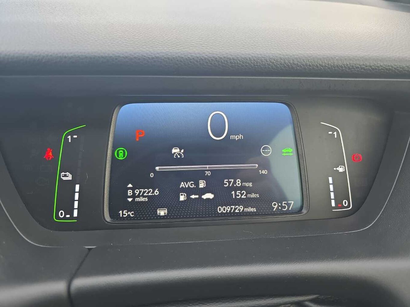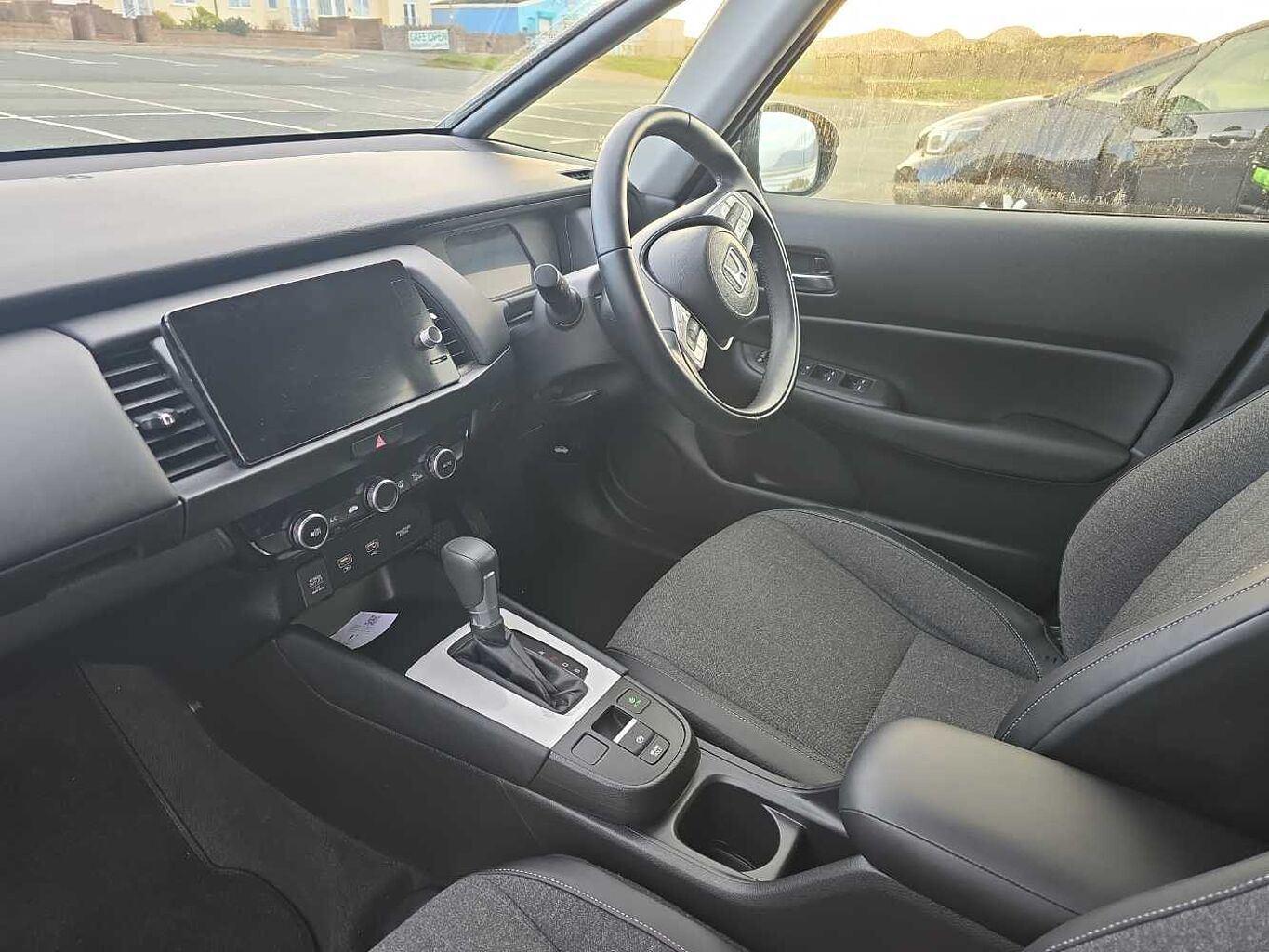 Exterior Features, Solid paint, Exterior Features, Auto wipers, Front and rear electric windows, Privacy glass, Rear wiper, Vehicle stability assist, Body colour door handles, eHEV emblem, Exclusive styling includes body colour front and rear bumper in styling decortation, Rear side wing doors, Single exhaust tailpipe, Sport grille, Automatic headlights with on/off timer, Coming/leaving home function, Black headlight extension, High beam assist, LED 3rd brake light, LED daytime running lights, LED Headlights, LED rear lights, Manual headlight levelling, Safety, Anti-lock braking system (ABS), Brake assist function, Brake hold function, Collision mitigation braking system, Electronic parking brake with auto hold, Hill start assist, Adaptive cruise control, Adjustable speed limiter, Agile handling assist, Electric power steering wheel with variable gear ratio steering, Emergency stop signalling system, Forward collision warning, Front and rear parking sensors, Idle stop, Intelligent speed limiter, Lane departure warning system, Lane keep assist system, Low speed following, Rear view camera, Road departure mitigation, Traffic sign recognition, Aspheric door mirrors, Electric adjustable door mirrors, Electrically folding door mirrors, Heated door mirrors, 3x3 point rear seatbelts, Child locks on rear doors, Deflation warning system, Driver knee airbag, Driver SRS airbag (single stage inflation), Driver/Front Passenger airbags, Front and rear seat belt with emergency locking retractor, Front and rear side curtain airbag, Front centre airbag, Front side airbags, Passenger SRS airbag cut-off device, Rear side airbags, Whiplash lessening front headrests, Audio / Communications, Bluetooth hands free telephone connection, eCall emergency call system, Wireless apple carplay, 'Shark fin' mobile antenna, 180w Power audio system with 4 speakers, 2 USB-C connectors rear, 2x USB Front socket (1 data & 1 charge), Remote audio controls on steering wheel, Driver Convenience, Tailgate, Miscellaneous, BLIS (Blind Spot Information System) with Cross Traffic Monitor, Econ mode, Honda CONNECT with GARMIN Navigation + 9" touchscreen, AM/FM/DAB/Apple Carplay and android auto, Multi-information display, Traffic jam assist, Trim, Soft pad leather interior panels, 3 seat bench in 2nd row, 60/40 split rear bench seat, Driver's seat height adjustment, Front head restraints, Heated front seats, Isofix points, Magic seat flexibility system, Rear head restraints, Single front passenger seat, Interior Features, Climate control air conditioning, Cargo net hooks, Driver and front passenger seat armrests, Driver and passenger front seat pockets, Fabric/leather upholstery, Front accessory power socket, Heated steering wheel, Leather gearshift knob, Leather steering wheel, Plating interior door handles, Tilt/telescopic adjustable steering wheel, Tonneau cover, Front map lights, Front/rear courtesy lights, Trunk light, Vanity mirror illumination, Sunvisors with vanity mirrors, Security, Honda super locks, Immobiliser, Mirrors and windows key fob operation, Remote central locking with 2 remote folding keys, Security alarm, Smart entry + Smart start, Wheels, Tyre repair kit