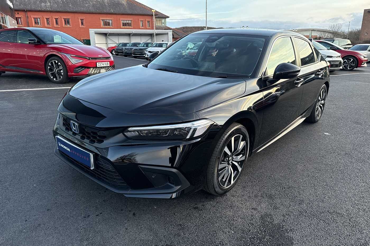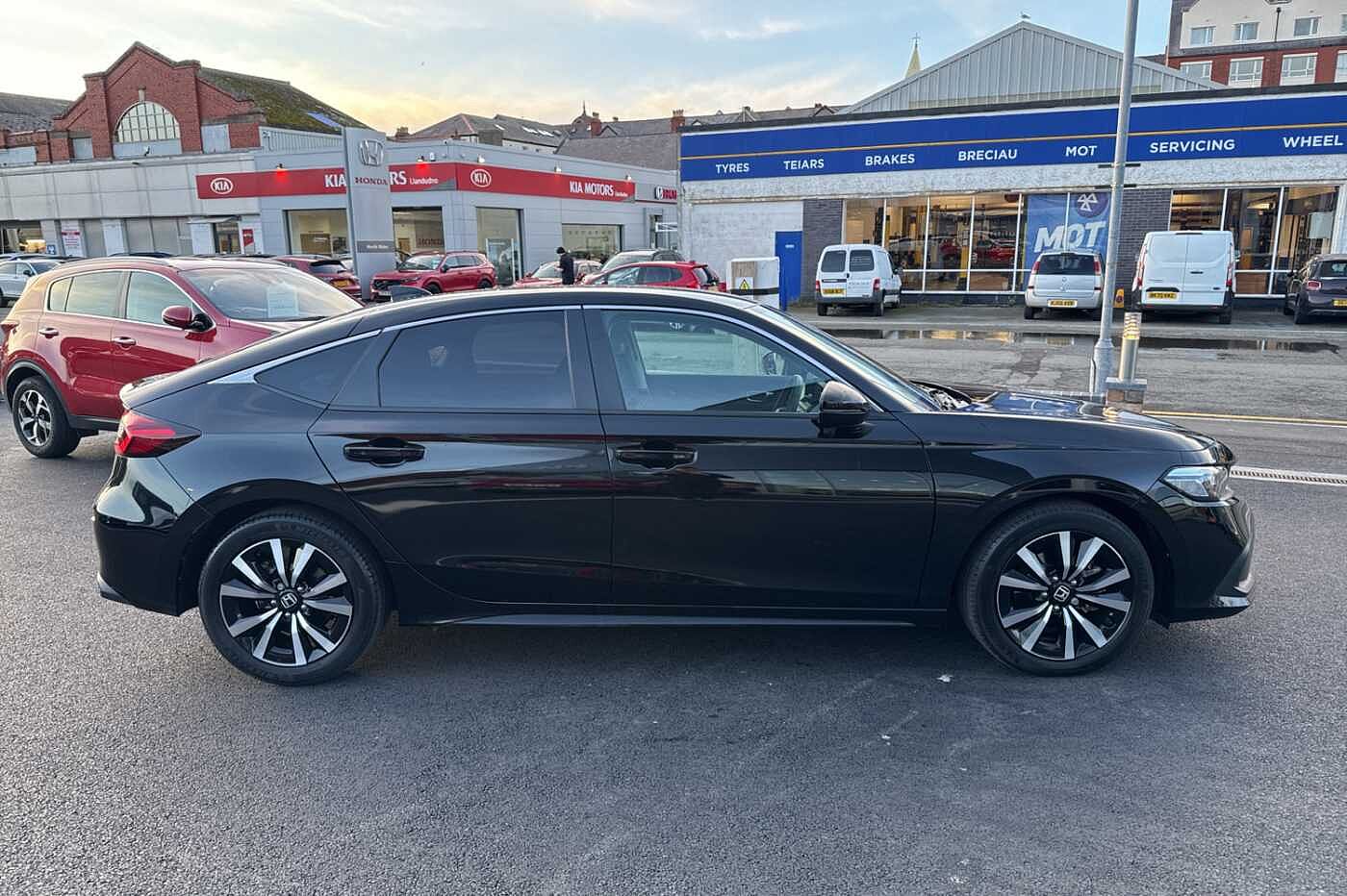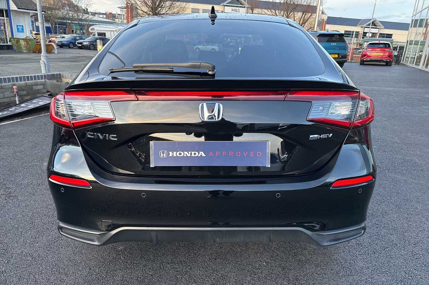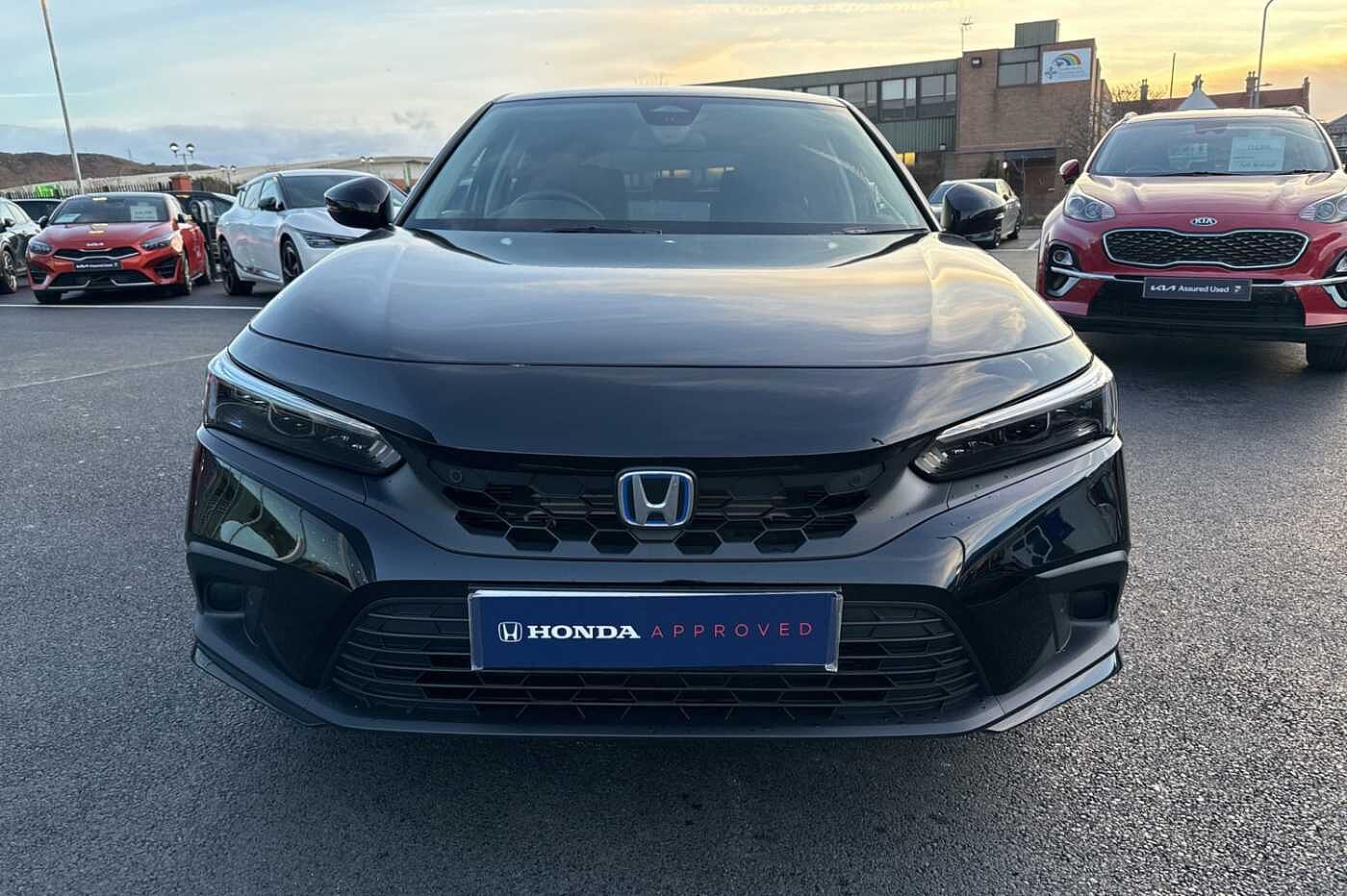 Exterior Features, Automatic rain sensing wipers, Electric front and rear windows, Privacy glass, Rear wiper, Variable front intermittent wipers, Vehicle stability assist, Body colour door handles, Chrome window garnish, Material finish grille, Pop up hood, Rear side wing doors, Single hidden exhaust pipe, Auto headlight adjuster, Auto headlights, Automatic coming/leaving home lighting function, Headlight extension black, High beam assist, High level LED brake light, LED daytime running lights, LED front turn type, LED Headlights, LED rear lights, Safety, ABS+EBD+Brake assist, Brake hold function, Collision mitigation braking system, Collision mitigation throttle control, Electronic parking brake with auto hold, Hill start assist, Low speed brake system, Regenerative braking/deceleration paddle control, Adaptive cruise control, Adaptive motion for electric power steering, Adjustable speed limiter, Agile handling assist, Driving modes, Electric power steering wheel with variable gear ratio steering, Emergency stop signalling system, Forward collision warning, Front and rear parking sensors, Honda sensing, Idle stop, Intelligent speed limiter, Lane departure warning system, Lane keep assist, Low speed following, Rear parking camera, Road departure mitigation, Traffic sign recognition, Aspherical driver door mirrors, Electric adjustable heated door mirrors, Electrically folding door mirrors, 3x3 point rear seatbelts, Airbags - driver and front passenger, Airbags - Knee (AS), Airbags - Knee (DR), Anti-whiplash front headrests, Deflation detection system, Driver SRS airbag (single stage inflation), Front and rear curtain airbags, Front and rear seat belts with emergency locking retractor (ELR), Front centre airbag, Front side airbags, Manual child lock in rear doors, Passenger airbag deactivate switch, Rear airbags, Audio / Communications, Bluetooth hands free telephone connection, Wireless apple carplay, 'Shark fin' mobile antenna, 2x USB Front socket (1 data & 1 charge), 8 speakers, Digital Audio Broadcast (DAB) Tuner, Front tweeters, Steering wheel mounted audio controls, Driver Convenience, Power meter, Tailgate, Miscellaneous, 7" Multi information display screen, BLIS (Blind Spot Information System) with Cross Traffic Monitor, Economy mode, Emergency call service, Honda CONNECT with Navigation 9" touchscreen, AM/FM/DAB, Apple Carplay and Android Auto, live traffic info, Traffic jam assist, Interior Features, Dual climate control air conditioning system, Cargo accessory power socket, Cargo net hooks, Driver and front passenger seat armrests, Fabric upholstery, Front accessory power socket, Hybrid emblem, Leather steering wheel, Platinum chrome interior door handles, Rear seat centre armrest, Tilt/telescopic adjustable steering wheel, Tonneau cover, USB Rear number 2 x charge, Front map lights, Front/rear courtesy lights, Glovebox light, Meter Illumination white, Rear reading lights, Trunk light, White ambient roof light, Sunvisors with illuminated vanity mirrors, Trim, 3 seat bench in 2nd row, 60/40 split folding rear seat, Driver's electric lumbar adjustment, Driver's seat height adjustment, Heated front seats, Isofix points/i size, Passenger seat back pocket, Rear head restraints, Single front passenger seat, Security, Immobiliser, Mirrors and windows key fob, Remote central locking with 2 jack knife keys, Security alarm, Selectable door unlock, Smart entry + Smart start, Superlocking, Tilt sensors, Ultrasonic security sensor, Wheels, 17" 2 tone diamond cut alloy wheels, Tyre repair kit