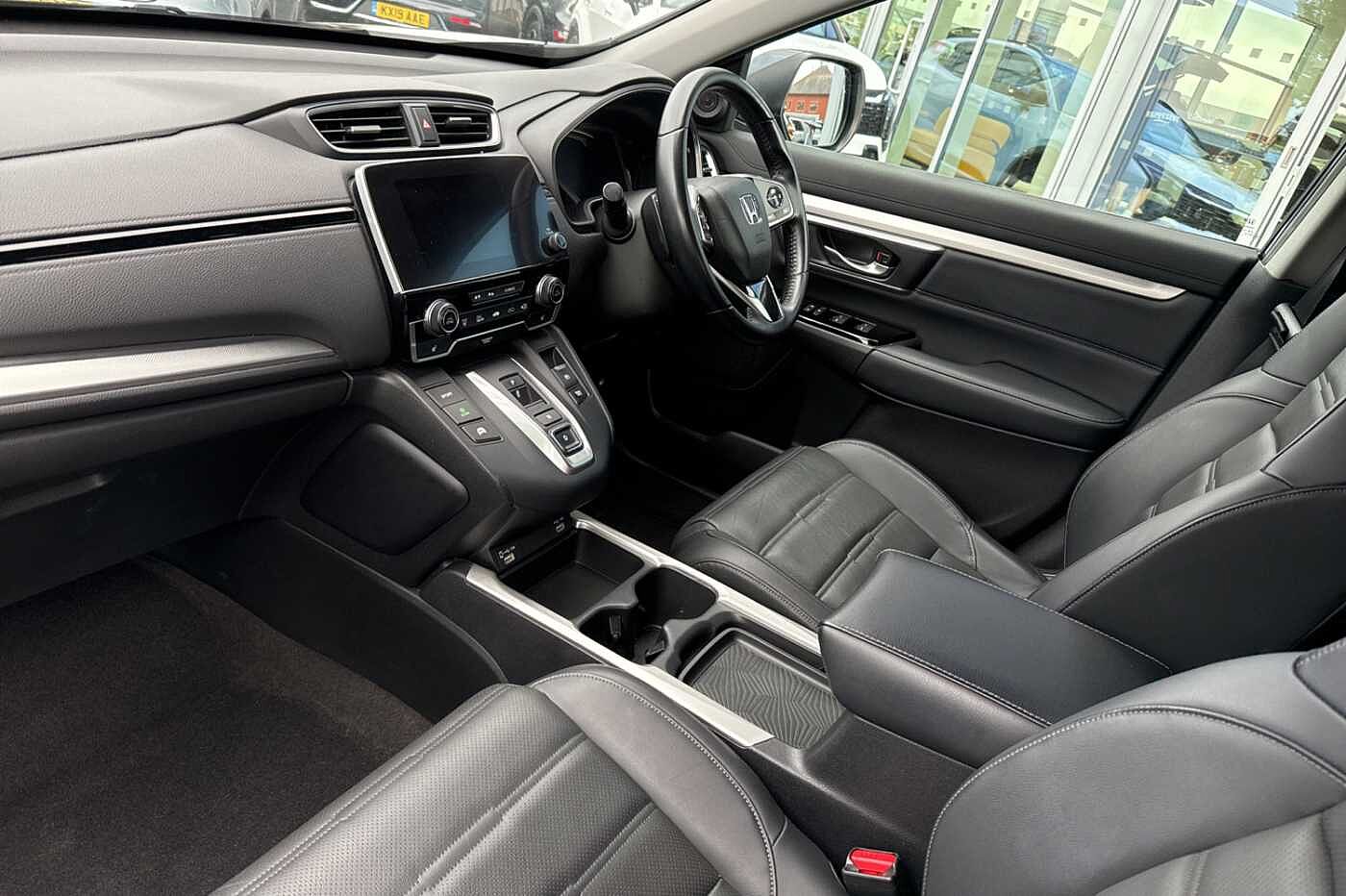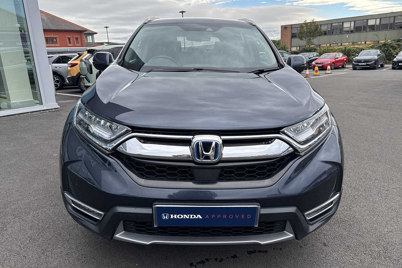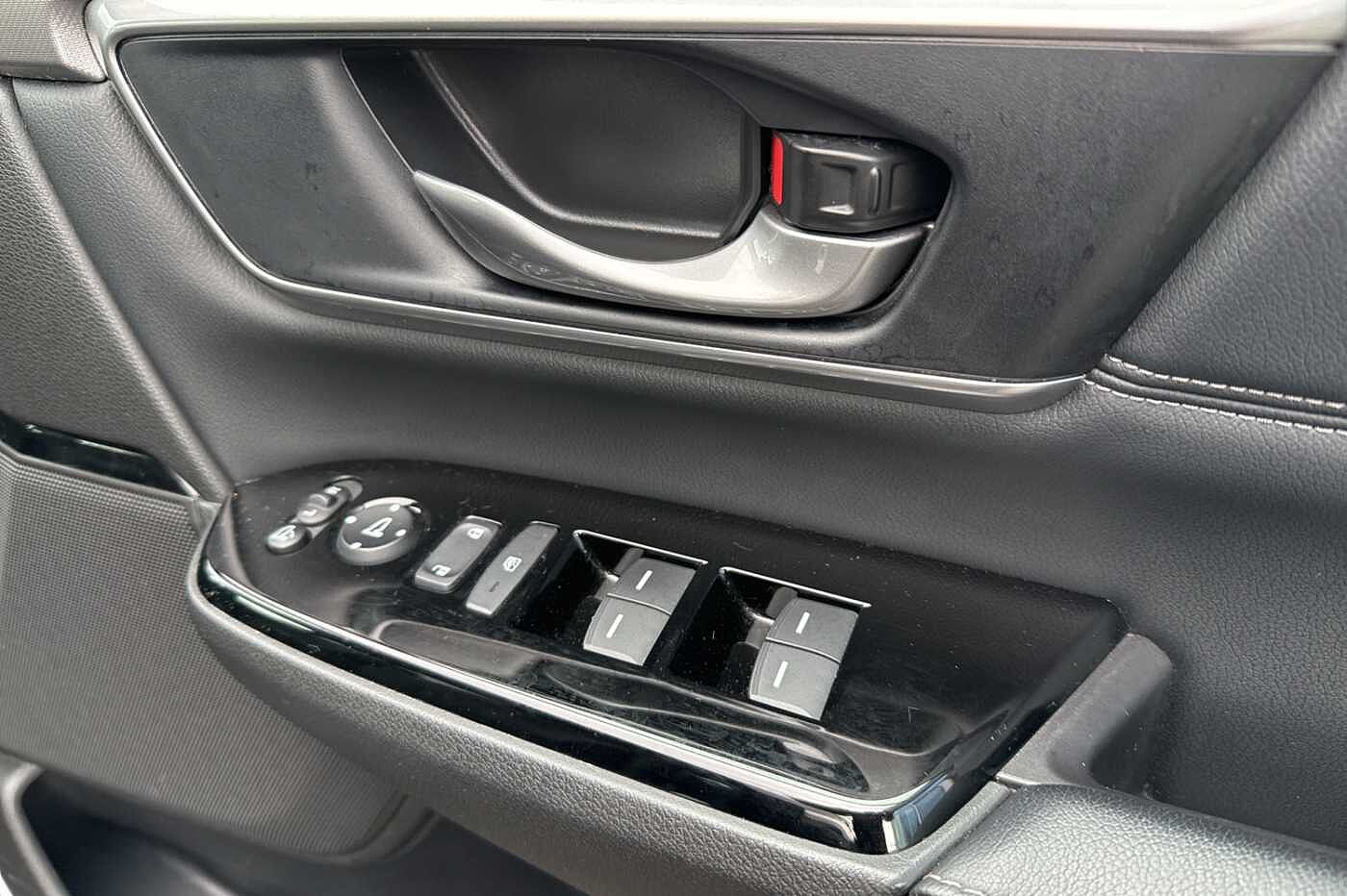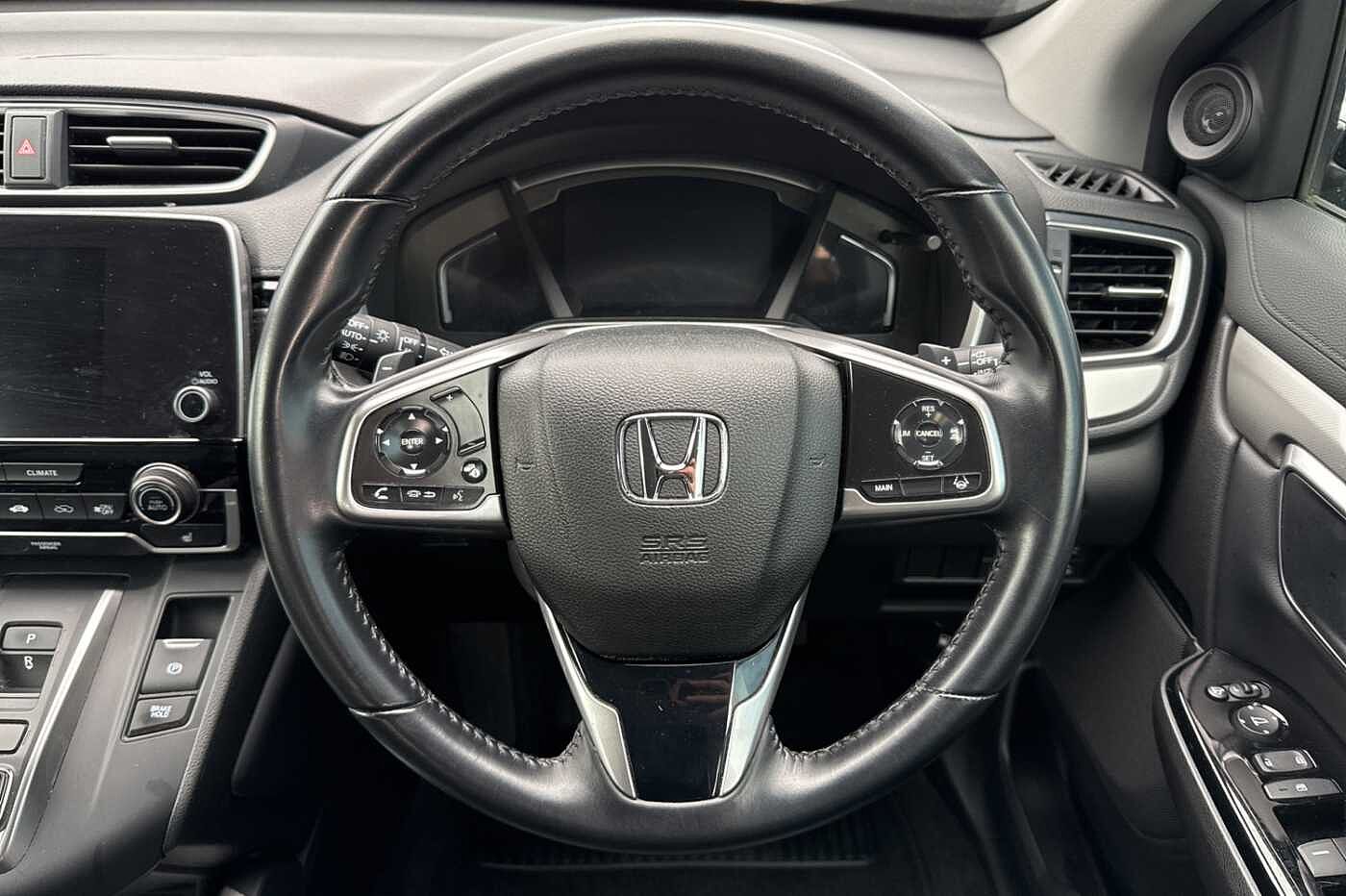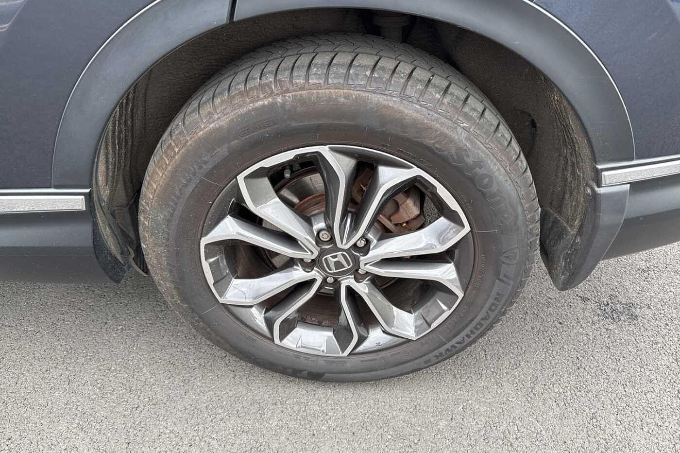 Exterior Features, Electric front windows/one touch facility, Electric rear windows + one touch facility, Front windscreen de-icer, Rain sensor, Rear privacy glass, Rear wiper, Vehicle stability assist, Body colour bumpers, Body colour door handles, Roof rails, Shark fin roof aerial, Tailgate spoiler, Automatic headlights with dusk sensor, Cornering light, High beam assist, LED daytime running lights, LED front fog lights, LED Headlights, LED rear lights, Welcome home function, Safety, ABS/EBD, Brake assist function, Collision mitigation braking system, Electronic parking brake with auto hold, Hill start assist, Adaptive cruise control, Agile handling assist, Electric power steering, Emergency stop signalling system, Forward collision warning, Front parking sensors, Lane departure warning system, Lane keep assist system, Low speed following, Rear parking sensors, Rear view camera, Road departure mitigation, Speed limiter, Traffic sign recognition, Aspheric door mirrors, Auto dimming rear view mirror, Door mirrors tilt when reversing, Electrically adjustable and heated door mirrors, Electrically retractable door mirrors, 5 x 3 point seatbelts, Anti-whiplash front headrests, Deflation detection system, Driver airbag, Front and rear curtain airbags, Front and rear seat belts with emergency locking retractor (ELR), Front side airbags, Passenger airbag deactivate switch, Audio / Communications, Bluetooth hands free telephone connection, 2 USB sockets in rear, 2x USB sockets in front, 9 speakers, DAB Digital radio, Dashboard centre speaker, Front tweeters, Steering wheel mounted controls, Subwoofer, Miscellaneous, BLIS (Blind Spot Information System) with dual power heated blind spot mirrors, Economy mode, Honda CONNECT with GARMIN Navigation + 7" touchscreen, DAB radio, Apple CarPlay, Android Auto, Aha app integration and internet browsing, Intelligent multi info display, Interior Features, Dual zone automatic climate control, Rear air vents, Accessory sockets, AWD emblem rear, Cargo hooks, Front centre armrest, Hybrid emblem, Instrument panel with garnish wood film, Leather steering wheel, Leather upholstery, Paddle shift controls, Rear centre armrest, Rear seat conversation mirror, Silver interior door handles, Sunglasses holder with mirror, Tilt/telescopic adjustable steering wheel, Tonneau cover, Ambient interior lighting, Courtesy lights, Footwell ambient lighting, Front map lights, Illuminated glovebox, Rear reading lights, Trunk light, Driver/passenger sunvisors with illuminated vanity mirrors, Trim, 60/40 split folding rear seat, Driver's electric adjustable lumbar support, Driver/passenger front seatback pockets, Electric lumbar adjustment on passenger's seat, Front passenger seat height adjust, Heated front seats, Height adjustable driver's seat, Isofix child seat preparation, Rear headrests, Security, Honda super locks, Immobiliser, Security alarm, Smart entry + Smart start, Ultrasonic security sensor, Wheels, Tyre repair kit
