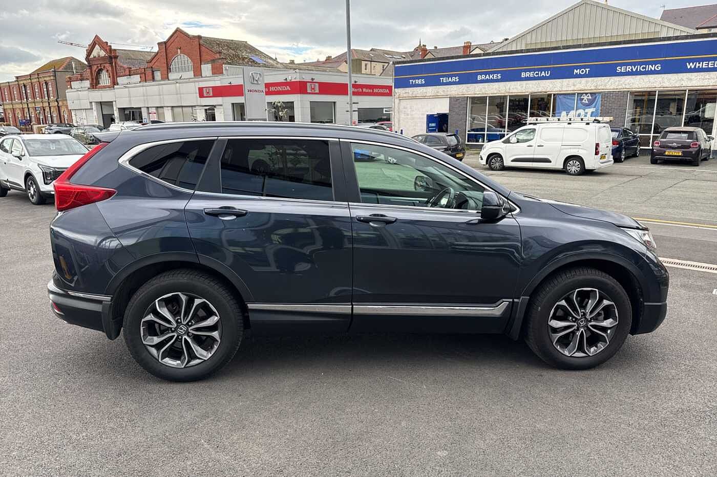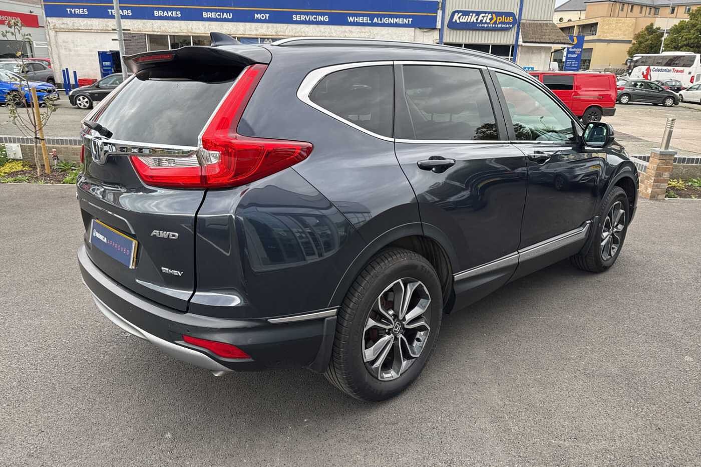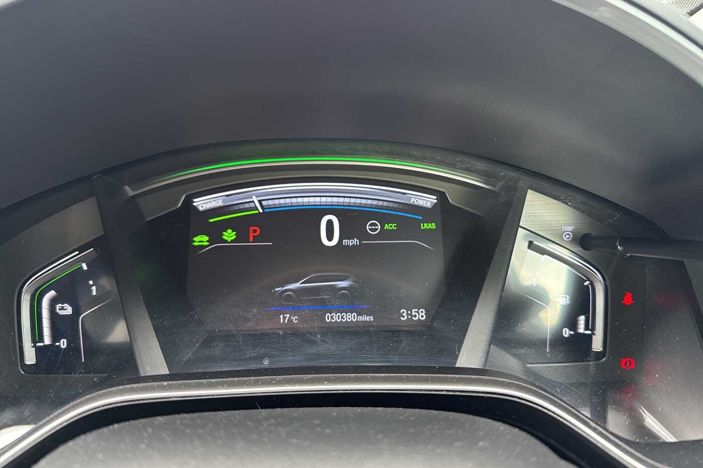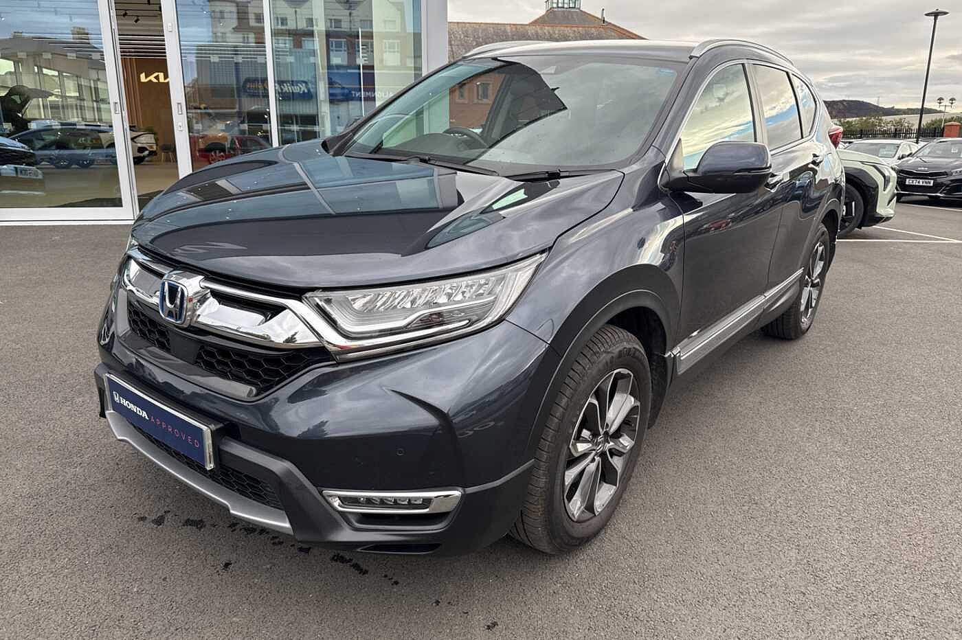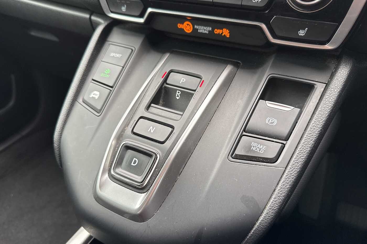 Exterior Features, Electric front windows/one touch facility, Electric rear windows + one touch facility, Front windscreen de-icer, Rain sensor, Rear privacy glass, Rear wiper, Vehicle stability assist, Body colour bumpers, Body colour door handles, Roof rails, Shark fin roof aerial, Tailgate spoiler, Automatic headlights with dusk sensor, Cornering light, High beam assist, LED daytime running lights, LED front fog lights, LED Headlights, LED rear lights, Welcome home function, Safety, ABS/EBD, Brake assist function, Collision mitigation braking system, Electronic parking brake with auto hold, Hill start assist, Adaptive cruise control, Agile handling assist, Electric power steering, Emergency stop signalling system, Forward collision warning, Front parking sensors, Lane departure warning system, Lane keep assist system, Low speed following, Rear parking sensors, Rear view camera, Road departure mitigation, Speed limiter, Traffic sign recognition, Aspheric door mirrors, Auto dimming rear view mirror, Door mirrors tilt when reversing, Electrically adjustable and heated door mirrors, Electrically retractable door mirrors, 5 x 3 point seatbelts, Anti-whiplash front headrests, Deflation detection system, Driver airbag, Front and rear curtain airbags, Front and rear seat belts with emergency locking retractor (ELR), Front side airbags, Passenger airbag deactivate switch, Audio / Communications, Bluetooth hands free telephone connection, 2 USB sockets in rear, 2x USB sockets in front, 9 speakers, DAB Digital radio, Dashboard centre speaker, Front tweeters, Steering wheel mounted controls, Subwoofer, Miscellaneous, BLIS (Blind Spot Information System) with dual power heated blind spot mirrors, Economy mode, Honda CONNECT with GARMIN Navigation + 7" touchscreen, DAB radio, Apple CarPlay, Android Auto, Aha app integration and internet browsing, Intelligent multi info display, Interior Features, Dual zone automatic climate control, Rear air vents, Accessory sockets, AWD emblem rear, Cargo hooks, Front centre armrest, Hybrid emblem, Instrument panel with garnish wood film, Leather steering wheel, Leather upholstery, Paddle shift controls, Rear centre armrest, Rear seat conversation mirror, Silver interior door handles, Sunglasses holder with mirror, Tilt/telescopic adjustable steering wheel, Tonneau cover, Ambient interior lighting, Courtesy lights, Footwell ambient lighting, Front map lights, Illuminated glovebox, Rear reading lights, Trunk light, Driver/passenger sunvisors with illuminated vanity mirrors, Trim, 60/40 split folding rear seat, Driver's electric adjustable lumbar support, Driver/passenger front seatback pockets, Electric lumbar adjustment on passenger's seat, Front passenger seat height adjust, Heated front seats, Height adjustable driver's seat, Isofix child seat preparation, Rear headrests, Security, Honda super locks, Immobiliser, Security alarm, Smart entry + Smart start, Ultrasonic security sensor, Wheels, Tyre repair kit
