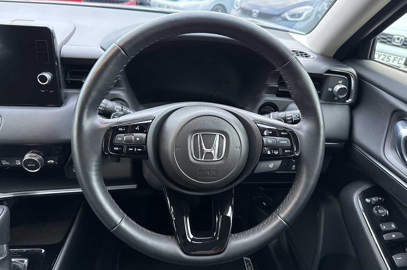 Exterior Features, Automatic rain sensing wipers, Electric front and rear windows, Front wiper de-icer, Heated front windscreen, Heated rear window, Rear wiper, Variable front intermittent wipers, Windscreen shadeband, Vehicle stability assist, Body colour bumpers, Body colour tailgate spoiler, Body coloured door handles, Exclusive styling in lower bumper black,Fog garnish paint emblem gray black lower door garnish with silver accent,Bumper skid garnish sharp silver, High gloss side window surrounds, Rear side wing doors, Auto high beam, Automatic coming home lighting, Automatic headlights, Front sequential turn, Headlight washers, High level third brake light, LED daytime running lights, LED front fog lights, LED headlamps, Manual headlight levelling, Red and clean lens LED rear lights, Safety, ABS+EBD+Brake assist, Auto hold function, Collision mitigation braking system, Collision mitigation throttle control, Electronic parking brake, Hill descent control, Hill start assist, Paddle deceleration control, Regenerative braking system, Adaptive cruise control, Adjustable speed limiter, Agile handling assist, Drive modes select (Eco, normal and sport), Electric power steering, Emergency stop signalling system, Forward collision warning, Front parking sensors, Idle stop, Intelligent speed limiter, Lane departure warning, Lane keep assist, Low speed following, Rear parking sensors and rear view camera, Road departure mitigation, Traffic sign recognition, Auto dimming rear view mirror, Auto folding door mirrors, Electrically adjustable and heated door mirrors, Retractable/reverse auto tilt door mirrors, 3x3 point rear seatbelts, Anti-whiplash front headrests, Deflation detection system, Dual front SRS airbags, Electric child locks, Front and rear curtain airbags, Front and rear safety belts with Emergency Locking Retractor, Front side airbags, Low speed safety system, Passenger SRS airbag cut-off device, Audio / Communications, Bluetooth hands free telephone connection, WiFi connectivity, 'Shark fin' mobile antenna, 2 USB sockets in rear, 2x USB Front socket (1 data & 1 charge), 4 speakers + 2 tweeters, Steering wheel mounted remote controls, Driver Convenience, eCall emergency system, Handsfree power tailgate with walkaway close, Power meter, Miscellaneous, 7" TFT instrument cluster, BLIS (Blind Spot Information System) with Cross Traffic Monitor, Honda CONNECT with navigation, 9" touchscreen, AM/FM/DAB/Apple Carplay and android auto, Multi info display, Tachometer, Interior Features, Dual automatic air conditioning, Rear ventilation, Cargo net hooks, Front seat armrests, Heated steering wheel, Luggage area under floor storage box, Manual height/reach adjust steering wheel, Paddle shift controls, Rear centre armrest, Silver interior door handles, Silver interior panels, Smooth leather steering wheel, Tonneau cover, Ambient interior lighting, Courtesy lights, Front and rear map reading lights, Meter illumination light, Trunk light, Driver/passenger sunvisors with illuminated vanity mirrors, Trim, 3 rear headrests, 3 seat bench in 2nd row, 60/40 split folding rear seat, Driver seat back pocket, Driver's seat height adjustment, Front head restraints, Heated front seats, Isofix points, Magic seat flexibility system, Passenger seat back pocket, Single front passenger seat, Security, Door deadlocks, Honda super locks, Immobiliser, Keyless smart entry with push button start, Mirrors and windows key fob operation, Remote central locking with 2 remote folding keys, Security alarm, Wheels, Tyre repair kit