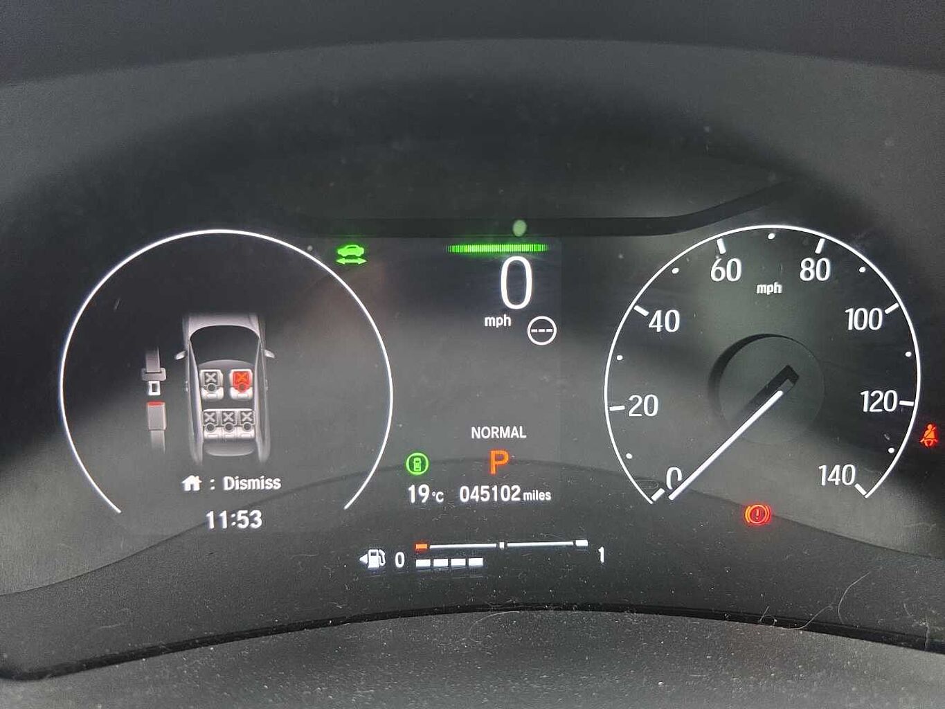 Exterior Features, Automatic rain sensing wipers, Electric front and rear windows, Front wiper de-icer, Heated front windscreen, Heated rear window, Rear wiper, Variable front intermittent wipers, Windscreen shadeband, Vehicle stability assist, Body colour bumpers, Body colour tailgate spoiler, Body coloured door handles, Exclusive styling in lower bumper black,Fog garnish paint emblem gray black lower door garnish with silver accent,Bumper skid garnish sharp silver, High gloss side window surrounds, Rear side wing doors, Auto high beam, Automatic coming home lighting, Automatic headlights, Front sequential turn, Headlight washers, High level third brake light, LED daytime running lights, LED front fog lights, LED headlamps, Manual headlight levelling, Red and clean lens LED rear lights, Safety, ABS+EBD+Brake assist, Auto hold function, Collision mitigation braking system, Collision mitigation throttle control, Electronic parking brake, Hill descent control, Hill start assist, Paddle deceleration control, Regenerative braking system, Adaptive cruise control, Adjustable speed limiter, Agile handling assist, Drive modes select (Eco, normal and sport), Electric power steering, Emergency stop signalling system, Forward collision warning, Front parking sensors, Idle stop, Intelligent speed limiter, Lane departure warning, Lane keep assist, Low speed following, Rear parking sensors and rear view camera, Road departure mitigation, Traffic sign recognition, Auto dimming rear view mirror, Auto folding door mirrors, Electrically adjustable and heated door mirrors, Retractable/reverse auto tilt door mirrors, 3x3 point rear seatbelts, Anti-whiplash front headrests, Deflation detection system, Dual front SRS airbags, Electric child locks, Front and rear curtain airbags, Front and rear safety belts with Emergency Locking Retractor, Front side airbags, Low speed safety system, Passenger SRS airbag cut-off device, Audio / Communications, Bluetooth hands free telephone connection, WiFi connectivity, 'Shark fin' mobile antenna, 2 USB sockets in rear, 2x USB Front socket (1 data & 1 charge), 4 speakers + 2 tweeters, Steering wheel mounted remote controls, Driver Convenience, eCall emergency system, Handsfree power tailgate with walkaway close, Power meter, Miscellaneous, 7" TFT instrument cluster, BLIS (Blind Spot Information System) with Cross Traffic Monitor, Honda CONNECT with navigation, 9" touchscreen, AM/FM/DAB/Apple Carplay and android auto, Multi info display, Tachometer, Interior Features, Dual automatic air conditioning, Rear ventilation, Cargo net hooks, Front seat armrests, Heated steering wheel, Luggage area under floor storage box, Manual height/reach adjust steering wheel, Paddle shift controls, Rear centre armrest, Silver interior door handles, Silver interior panels, Smooth leather steering wheel, Tonneau cover, Ambient interior lighting, Courtesy lights, Front and rear map reading lights, Meter illumination light, Trunk light, Driver/passenger sunvisors with illuminated vanity mirrors, Trim, 3 rear headrests, 3 seat bench in 2nd row, 60/40 split folding rear seat, Driver seat back pocket, Driver's seat height adjustment, Front head restraints, Heated front seats, Isofix points, Magic seat flexibility system, Passenger seat back pocket, Single front passenger seat, Security, Door deadlocks, Honda super locks, Immobiliser, Keyless smart entry with push button start, Mirrors and windows key fob operation, Remote central locking with 2 remote folding keys, Security alarm, Wheels, Tyre repair kit