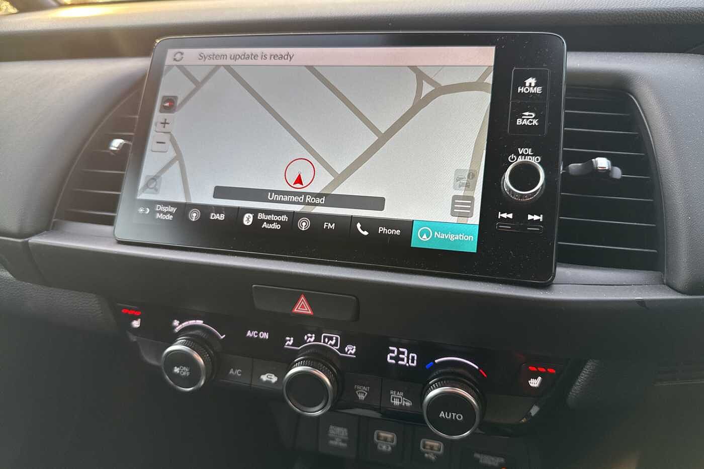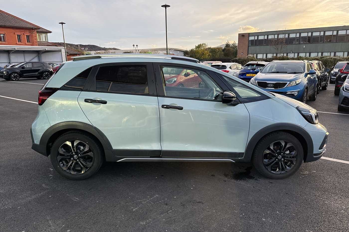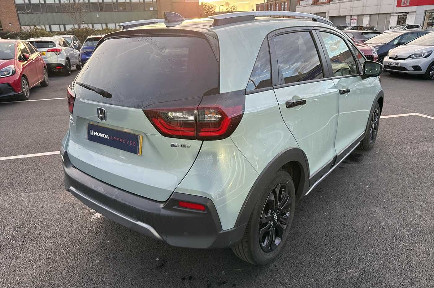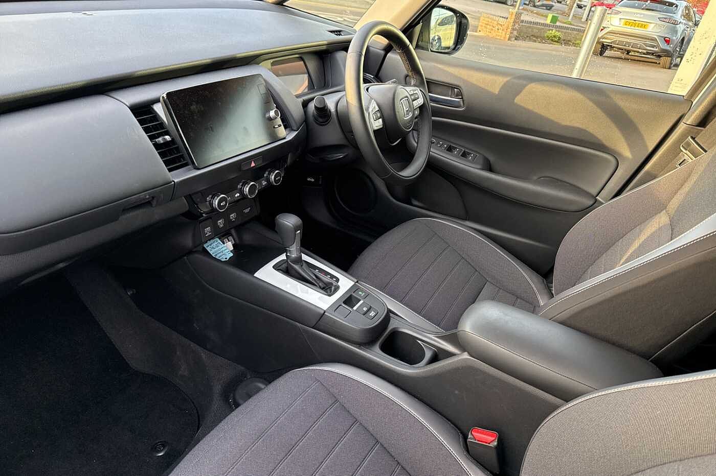 Paint - Special, Premium paint - Fjord mist, Trim - Cloth, Fabric/Water repellent cloth - Black, Exterior Features, Auto wipers, Front and rear electric windows, Privacy glass, Rear wiper, Vehicle stability assist, Black door handles, Body coloured front grille, eHEV emblem, Exclusive styling includes front and rear bumper, front fog garnish, silver fender, side sill garnish, Rear side wing doors, Roof rails, Single exhaust tailpipe, Automatic headlights with on/off timer, Coming/leaving home function, Black headlight extension, High beam assist, LED 3rd brake light, LED daytime running lights, LED front fog lights, LED Headlights, LED rear lights, Manual headlight levelling, Safety, Anti-lock braking system (ABS), Brake assist function, Brake hold function, Collision mitigation braking system, Electronic parking brake with auto hold, Hill start assist, Adaptive cruise control, Adjustable speed limiter, Agile handling assist, Driver attention monitoring system, Electric power steering wheel with variable gear ratio steering, Emergency stop signalling system, Forward collision warning, Front and rear parking sensors, Idle stop, Intelligent speed limiter, Lane departure warning system, Lane keep assist system, Low speed following, Rear view camera, Road departure mitigation, Traffic sign recognition, Aspheric door mirrors, Black door mirrors, Electric adjustable door mirrors, Electrically folding door mirrors, Heated door mirrors, 3x3 point rear seatbelts, Child locks on rear doors, Deflation warning system, Driver knee airbag, Driver SRS airbag (single stage inflation), Driver/Front Passenger airbags, Front and rear seat belt with emergency locking retractor, Front and rear side curtain airbag, Front centre airbag, Front side airbags, Passenger SRS airbag cut-off device, Rear side airbags, Whiplash lessening front headrests, Audio / Communications, Bluetooth hands free telephone connection, eCall emergency call system - ecall functionality is subject to 2G/3G network availability, Wireless apple carplay, 'Shark fin' mobile antenna, 180w Power audio system with 4 speakers, 2 USB-C connectors rear, 2x USB Front socket (1 data & 1 charge), Remote audio controls on steering wheel, Driver Convenience, Tailgate, Miscellaneous, Econ mode, Honda CONNECT with Navigation 9" touchscreen, AM/FM/DAB, Apple Carplay and Android Auto, live traffic info, Multi-information display, Traffic jam assist, Trim, Soft pad leather interior panels, 3 seat bench in 2nd row, 60/40 split rear bench seat, Driver's seat height adjustment, Front head restraints, Heated front seats, Isofix points, Magic seat flexibility system, Rear head restraints, Single front passenger seat, Interior Features, Climate control air conditioning, Cargo net hooks, Driver and front passenger seat armrests, Driver and passenger front seat pockets, Fabric/Water repellent upholstery, Front accessory power socket, Heated steering wheel, Leather gearshift knob, Leather steering wheel, Plating interior door handles, Tilt/telescopic adjustable steering wheel, Tonneau cover, Front map lights, Front/rear courtesy lights, Trunk light, Vanity mirror illumination, Sunvisors with vanity mirrors, Security, Honda super locks, Immobiliser, Mirrors and windows key fob operation, Remote central locking with 2 remote folding keys, Security alarm, Smart entry + Smart start, Wheels, 16" 3D chrome H centre cap alloy wheels, Tyre repair kit