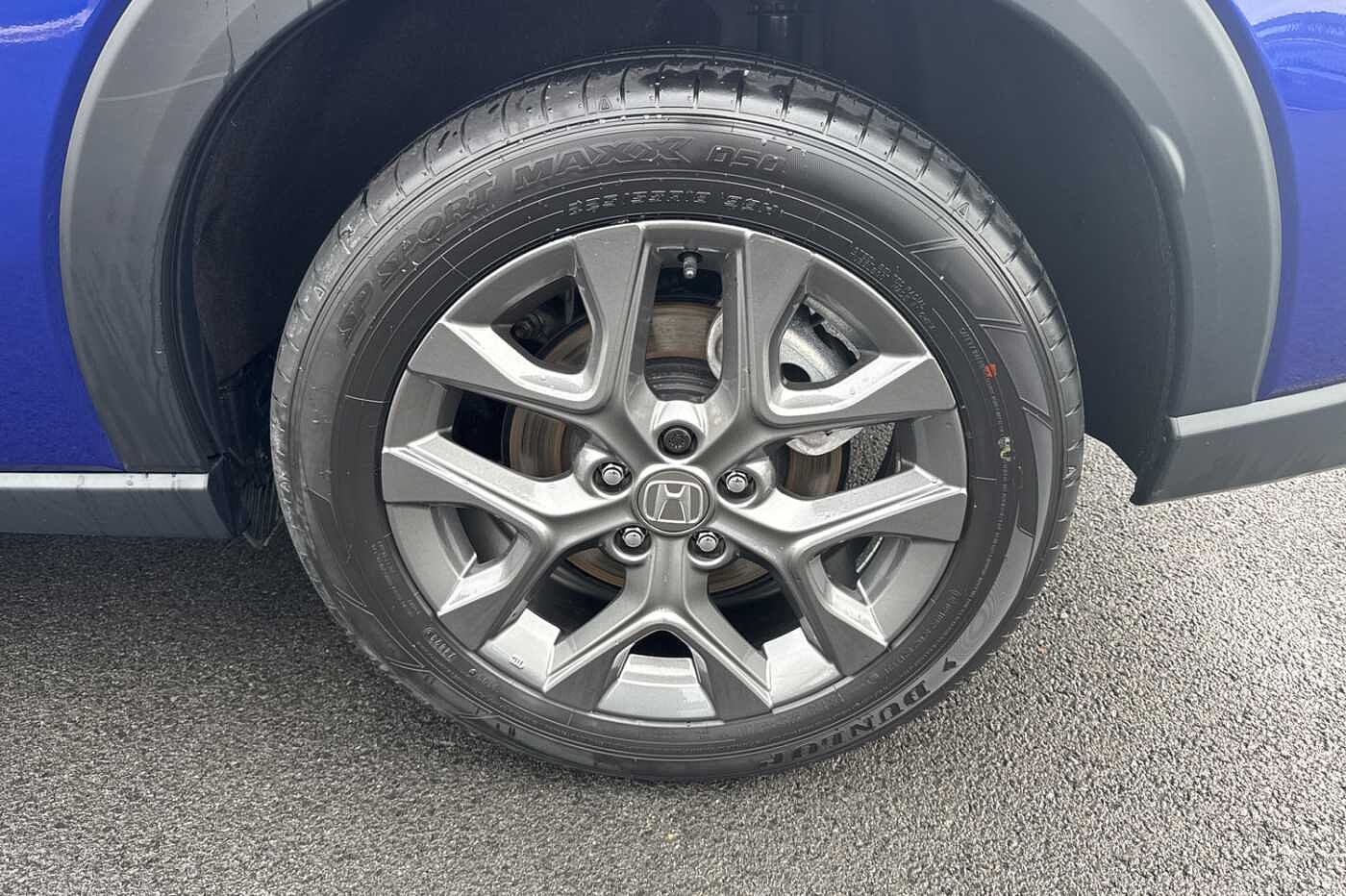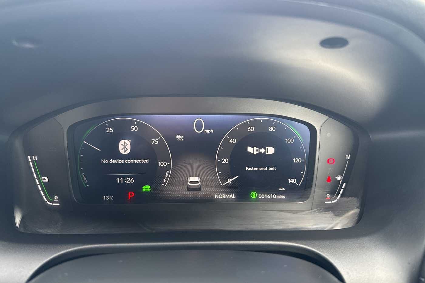 Exterior Features, Auto wipers, Front and rear electric windows, Rain sensor, Rear wiper, Vehicle stability assist, Black paint vertical design grille, Black Shark-fin antenna, Body colour door handles, Bumper skid garnish non painting black, Front and rear lower bumper in non painting black, Low gloss black window garnish, Non painting black side sill/fender garnish, Normal rear bumper, Rear side wing doors, Auto headlights, Front LED Indicator lights, Headlight auto on/off timer, High beam assist, LED daytime running lights, LED Headlights, LED rear lights, Third brake light, Safety, ABS/EBD, Brake assist function, Brake hold function, Collision mitigation braking system, Electronic parking brake with auto hold, Front and rear collision mitigation throttle control, Hill descent control, Hill start assist, Low speed brake system, 4 x front and 4 x rear parking sensors, Adaptive cruise control, Adjustable speed limiter, Agile handling assist, Drive mode (Econ, Normal, Snow, Sport), Electric power steering, Emergency stop signalling system, Forward collision warning, HEV mode, Idle stop, Intelligent speed limiter, Lane departure warning system, Lane keep assist system, Low speed following, Rear view camera, Road departure mitigation, Traffic sign recognition, Auto dimming rear view mirror, Electrically adjustable and heated door mirrors, Electrically folding door mirrors, Exterior mirror tilt for reverse, 5 x 3 point seatbelts, Deflation warning system, Driver airbag, Driver knee airbag, Driver SRS airbag (single stage inflation), Front and rear curtain airbags, Front and rear seat belts with emergency locking retractor (ELR), Front centre airbag, Front passenger airbag, Front side airbags, Manual child lock in rear doors, Passenger knee airbag, Passenger SRS airbag with cut off switch, Rear side airbags, Whiplash lessening front headrests, Audio / Communications, Bluetooth hands free telephone connection, E-call, Wireless apple carplay, 1X USB (A/2.5A) and 1x Charger (C/3A) on Front, 8 Speakers, Front tweeters, Steering wheel audio remote control, Driver Convenience, Power meter, Miscellaneous, 10.2" Multi information display, Honda CONNECT with Navigation 9" touchscreen, AM/FM/DAB, Apple Carplay and Android Auto, live traffic info, Traffic jam assist, Trim, Synthetic soft pad leather interior panels with silver painted ornament, 3 seat bench in 2nd row, 60/40 split one touch flat folding rear seats, Front passenger seatback pockets, Heated front seats, I-Size ISO Fix Points, Rear headrests, Single front passenger seat, Interior Features, Air conditioning - Rear vent, Dual zone automatic climate control, Accessory sockets in front, Cargo net hooks, Door and central instrument panel garnish, Door lining armrest with stich, Driver and front passenger seat armrests, Fabric upholstery, Front console garnish, Luggage floor box, Metal paddle shift, Normal pedals, Paintless outlet knob, Platinum chrome interior door handles, Rear centre armrest, Smooth leather steering wheel, Sunglasses Box, Tilt/telescopic adjustable steering wheel, Tonneau cover, Courtesy lights, Front map lights, Rear reading lights, Trunk light, Driver/passenger sunvisors with illuminated vanity mirrors, Security, Honda super locks, Immobiliser, Mirrors and windows key fob operation, Remote central locking with 2 key fobs, Security alarm, Selectable door unlock, Smart entry + Smart start, Tilt sensors, Ultrasonic security sensor, Wheels, Flat tyre solution temper tyre/repair kit
